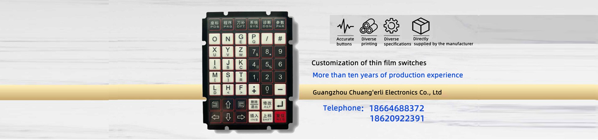 Thin film switch is a multi-layer structure (flat) type (non locking) key switch composed of insulating material layers with certain elasticity. Due to its beautiful appearance, long lifespan, and simple structure, it is widely used in various industries, from household appliances to high-tech products.
